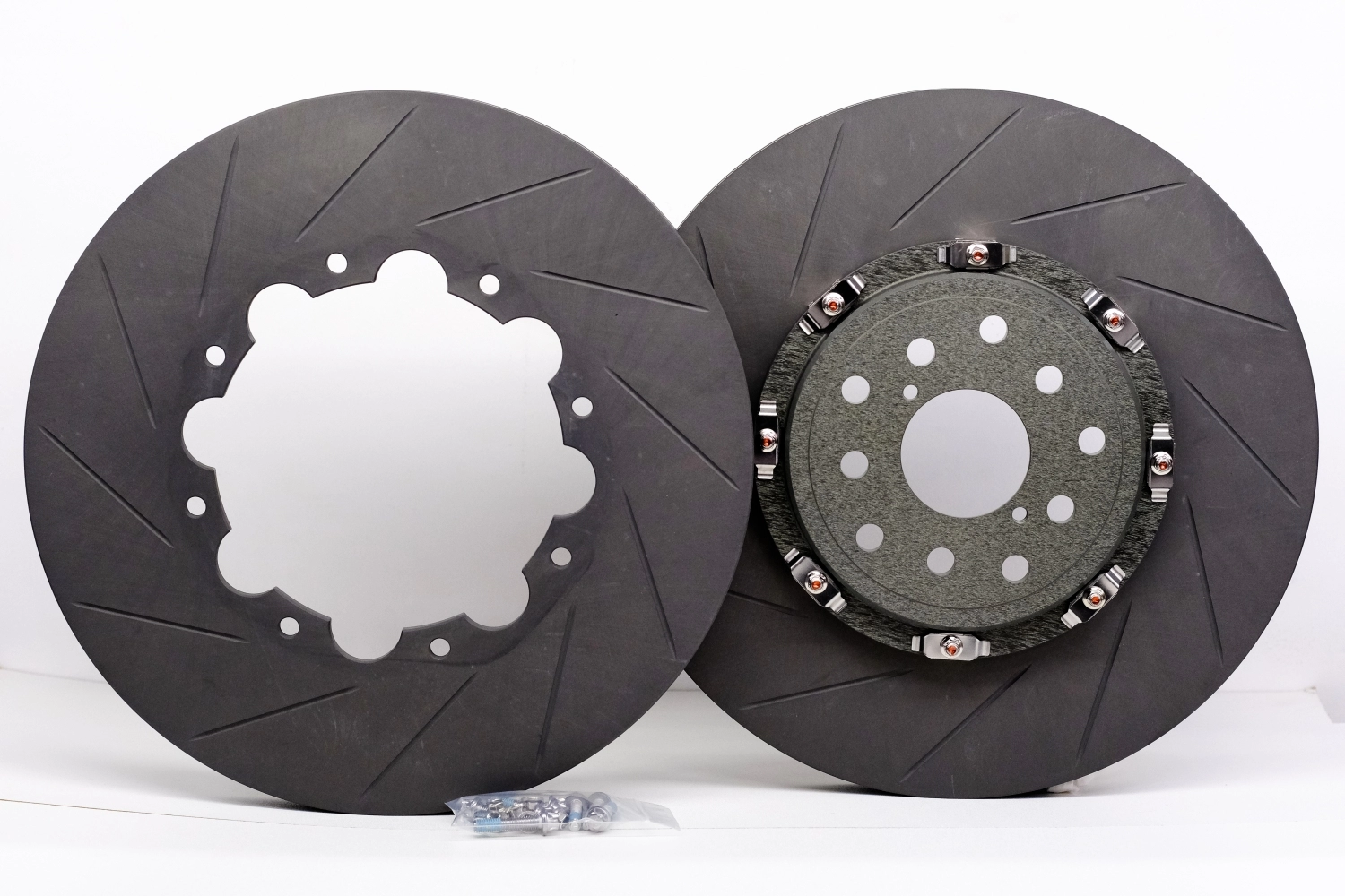 - Имеют по 12 направленных изогнутых насечек на кажой стороне диска. Правый и левый диски отличаются направлением слотов и каналов вентиляции.